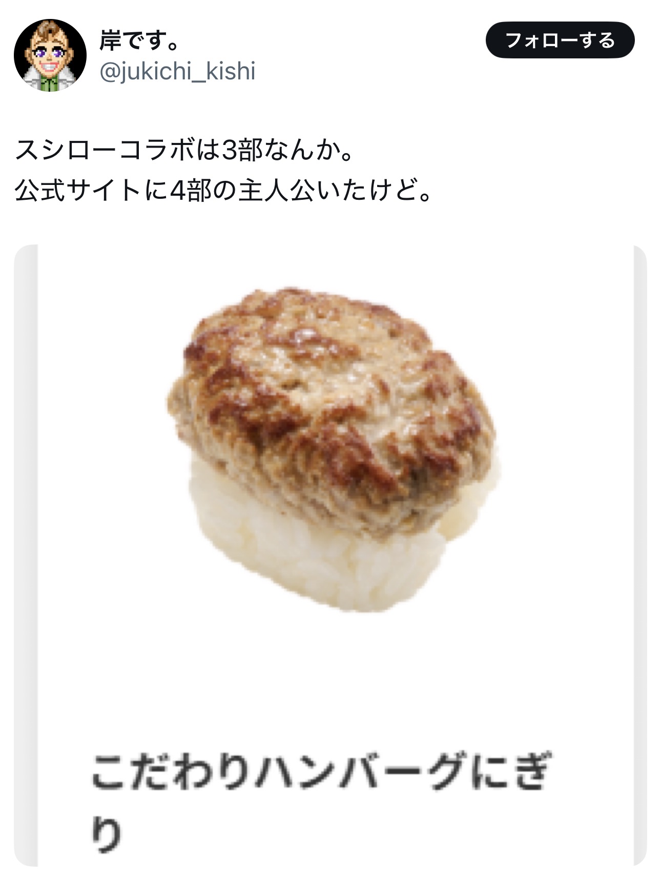 | … | 9無念Nameとしあき26/01/27(火)23:09:45No.1383158943そうだねx3 1769522985304.png-(246529 B) 寿司屋でいったいどんなコラボするんだ… |
