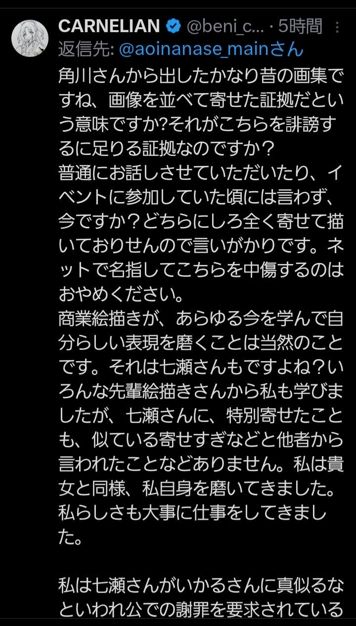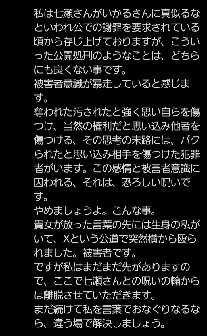 | … | 85無念Nameとしあき26/01/28(水)12:12:08No.1383231553そうだねx1>積極的に喧嘩売りに行ったの七瀬氏のほうだから… |