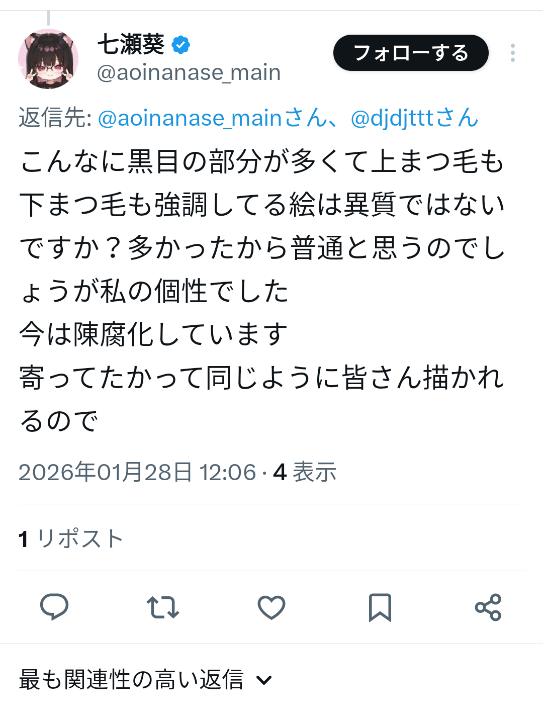 | … | 30無念Nameとしあき26/01/28(水)11:49:55No.1383228292+オタ絵界の狂犬になりつつある七瀬先生 |