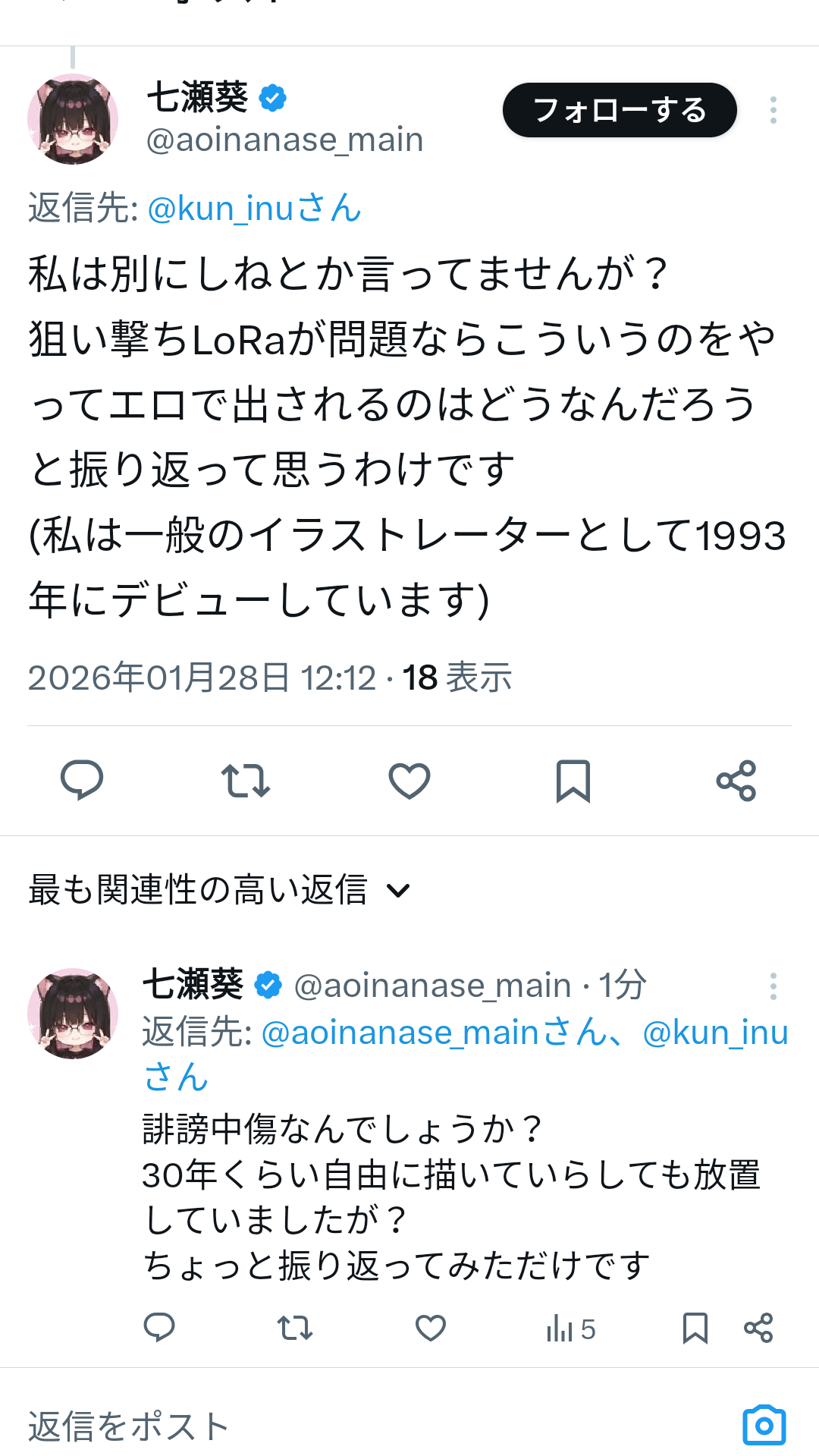 | … | 40無念Nameとしあき26/01/28(水)11:58:49No.1383229421+>オタ絵界の狂犬になりつつある七瀬先生 |