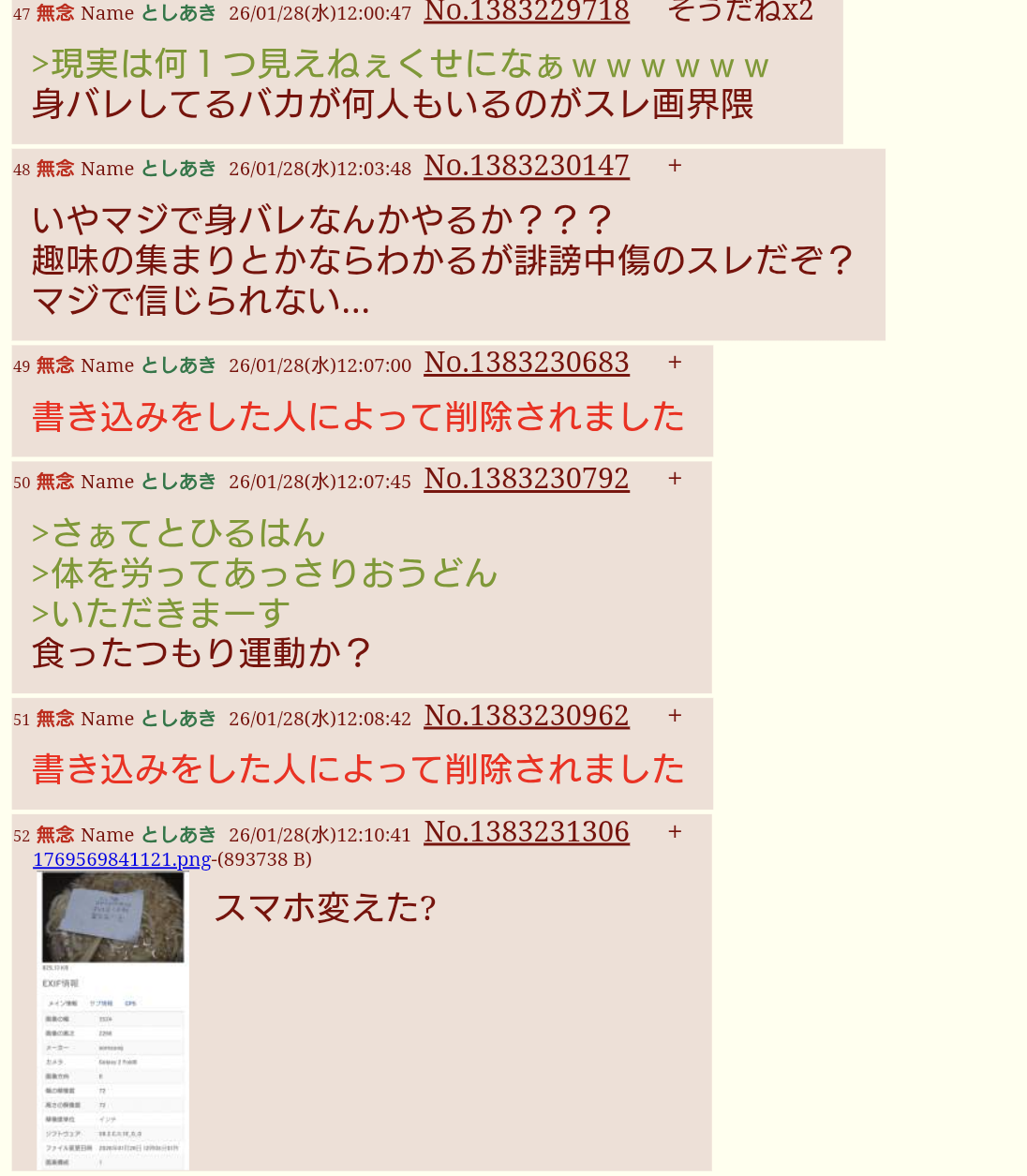 | … | 48無念Nameとしあき26/01/28(水)12:03:48No.1383230147+いやマジで身バレなんかやるか??? |