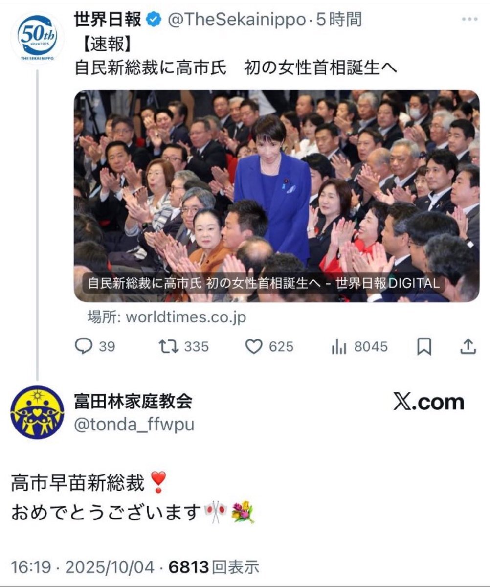 | … | 290無念Nameとしあき26/01/28(水)16:11:43No.1383271860+>野田が自民党時代に統一と関わってたって話を見て |