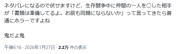 | … | 871無念Nameとしあき26/01/28(水)19:13:53No.1383305624そうだねx2img見てるけど実況スレより勢いあるのはいくら何でもおかしくねえか…? |
