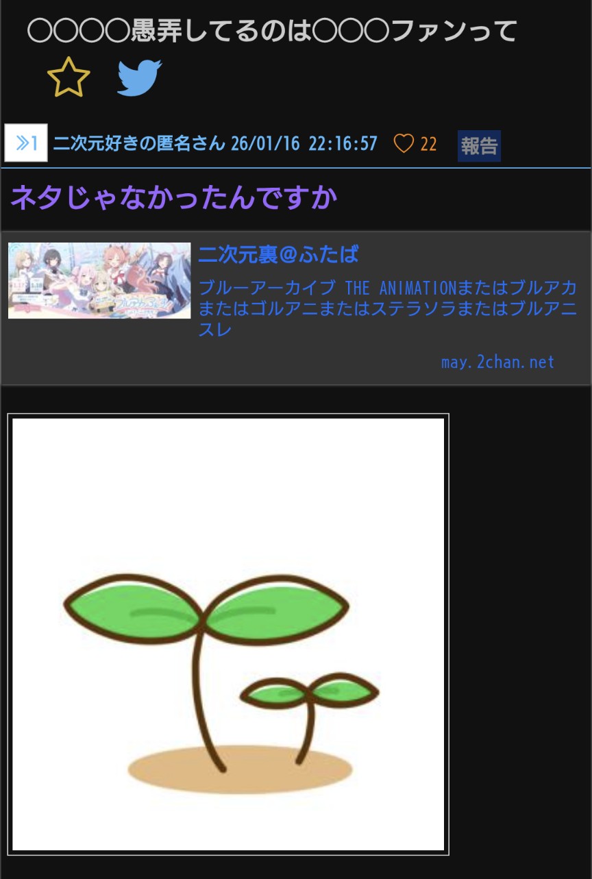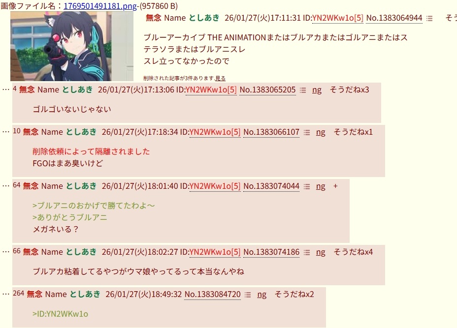 | … | 4無念Nameとしあき26/01/28(水)14:00:49No.1383251181+ブルアニスレが立たないのに愚痴スレが立つ |