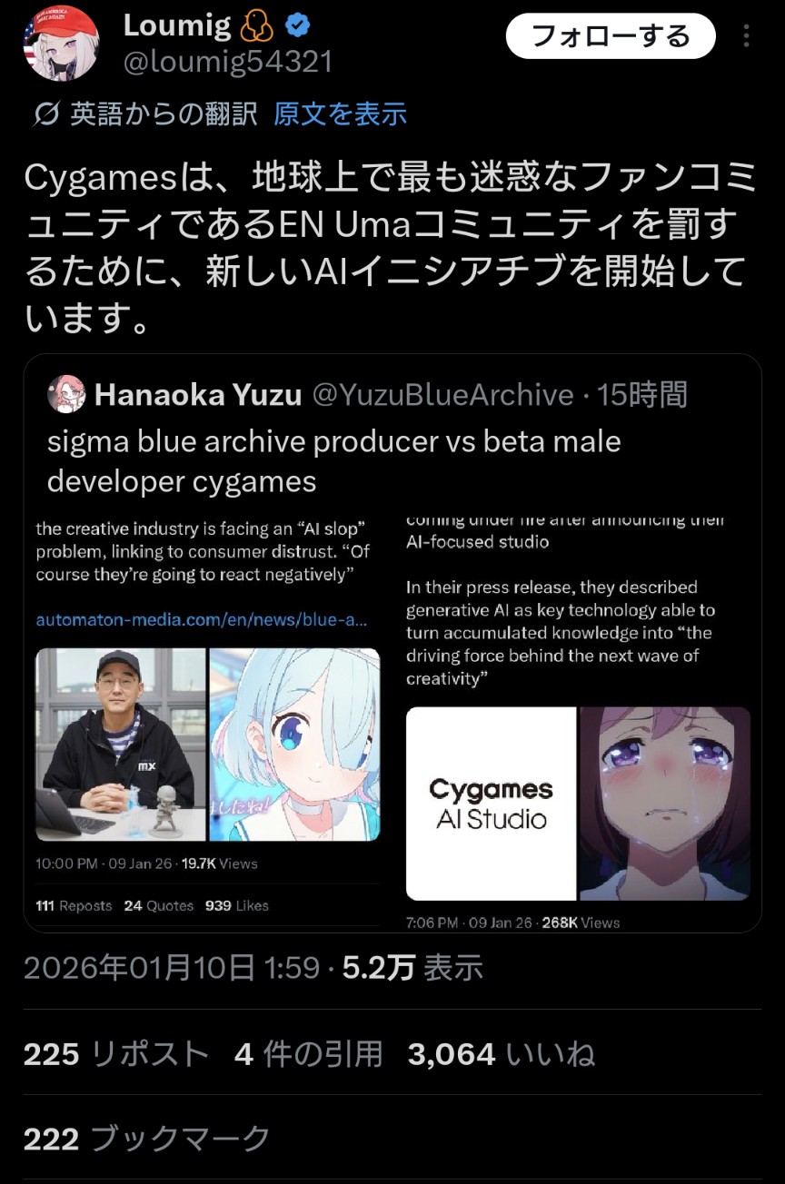 | … | 890無念Nameとしあき26/01/28(水)19:25:48No.1383308574+>同人イナゴは次の作品に移るだけだろうしな |