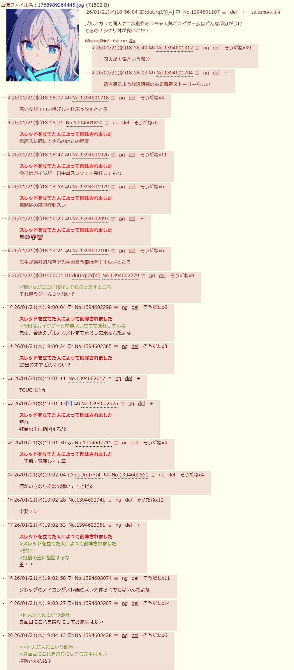 ブルアカ愚痴スレ削除された記事が21件あります.見る