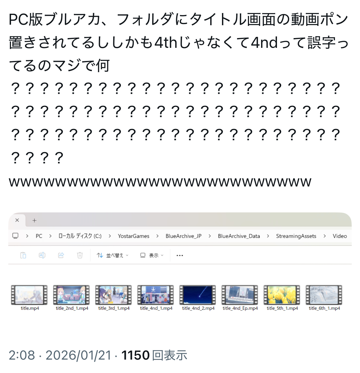 | … | 919無念Nameとしあき26/01/28(水)19:51:27No.1383315410そうだねx8中韓ゲー凄い!ってやってる中にブルアカ混ぜられてるとマジで笑うんすよね |