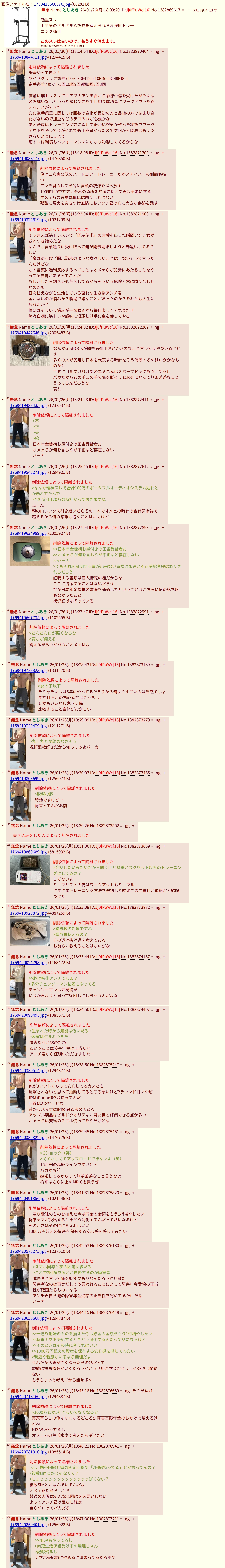 | … | 10無念Nameとしあき26/01/28(水)16:09:22No.1383271450そうだねx1>筋トレスレ |