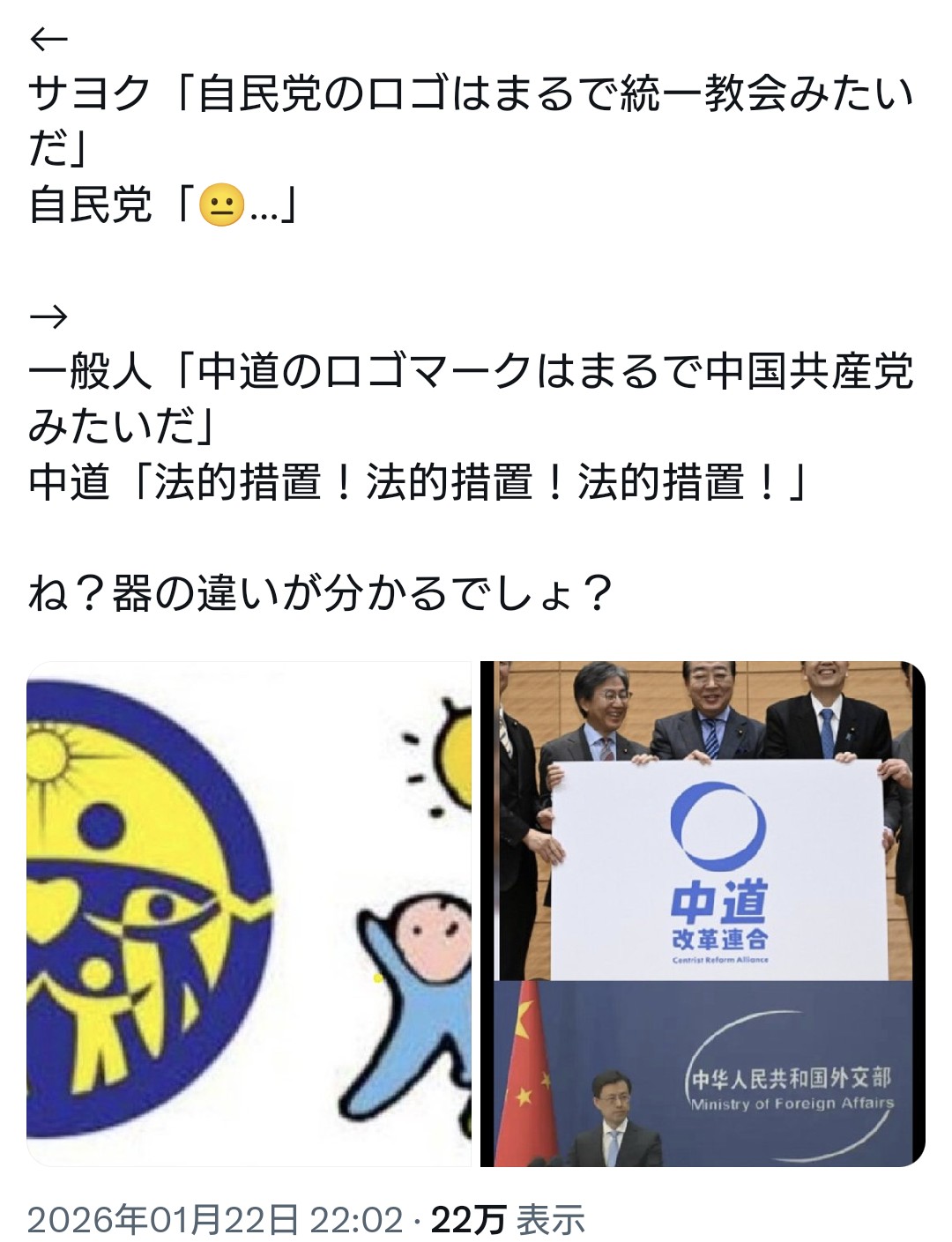 | … | 290無念Nameとしあき26/01/28(水)20:53:30No.1383335786+>こいつ共産党員だから中道が許せないだけだろ |