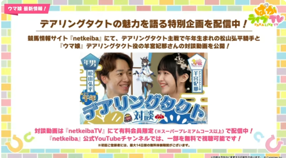 | … | 583無念Nameとしあき26/01/28(水)23:56:37No.1383387292そうだねx1>ウマ娘になるとハリウッド俳優にインタビューしたり新人でも脇に人気声優を置いて主演映画やらされたりするぽん |