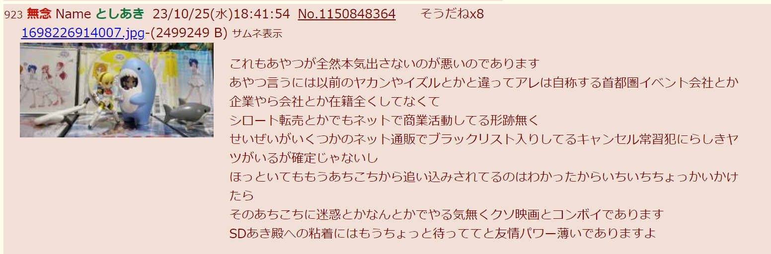| … | 31無念Nameとしあき26/01/29(木)21:14:45No.1383561299そうだねx2>スレ画がTFスレに貼られても別に問題ないだろ? |
