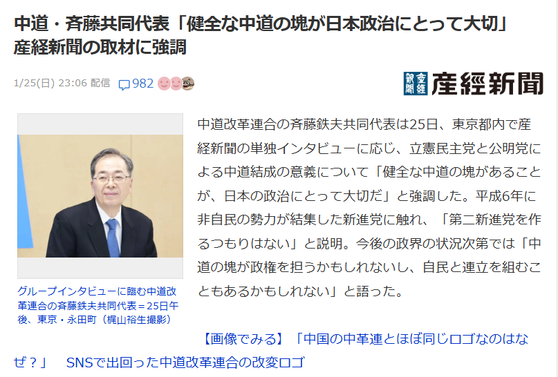 中道"改革"連合ってなんか違和感あるんだよね上限1000レスに達しました