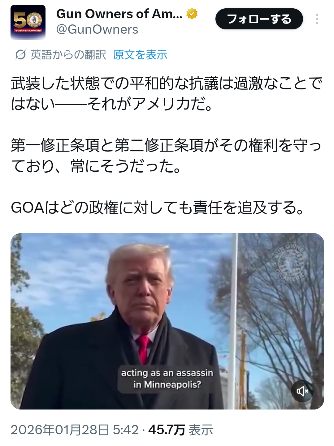 | … | 74無念Nameとしあき26/01/29(木)22:11:34No.1383577686+ガンオーナーズアメリカはライフル協会に次ぐ規模の銃器権利団体だよ |