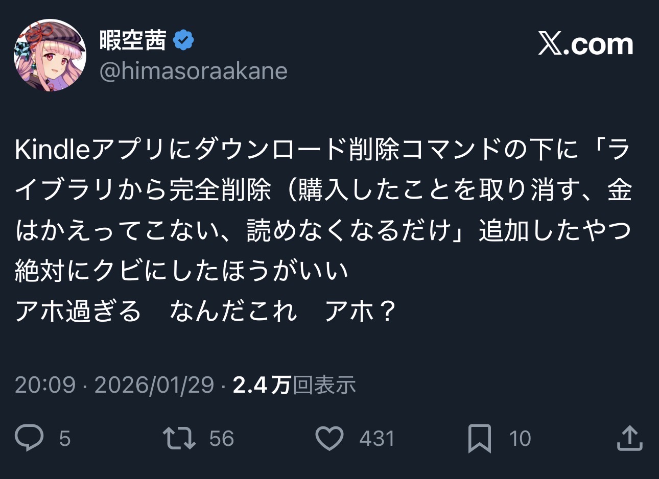 | … | 5🐼Nameとしあき26/01/29(木)22:53:53 IP:49.109.*(spmode.ne.jp)No.1383589156そうだねx23必要な機能ではあるが使用頻度が極めて低い完全削除を |
