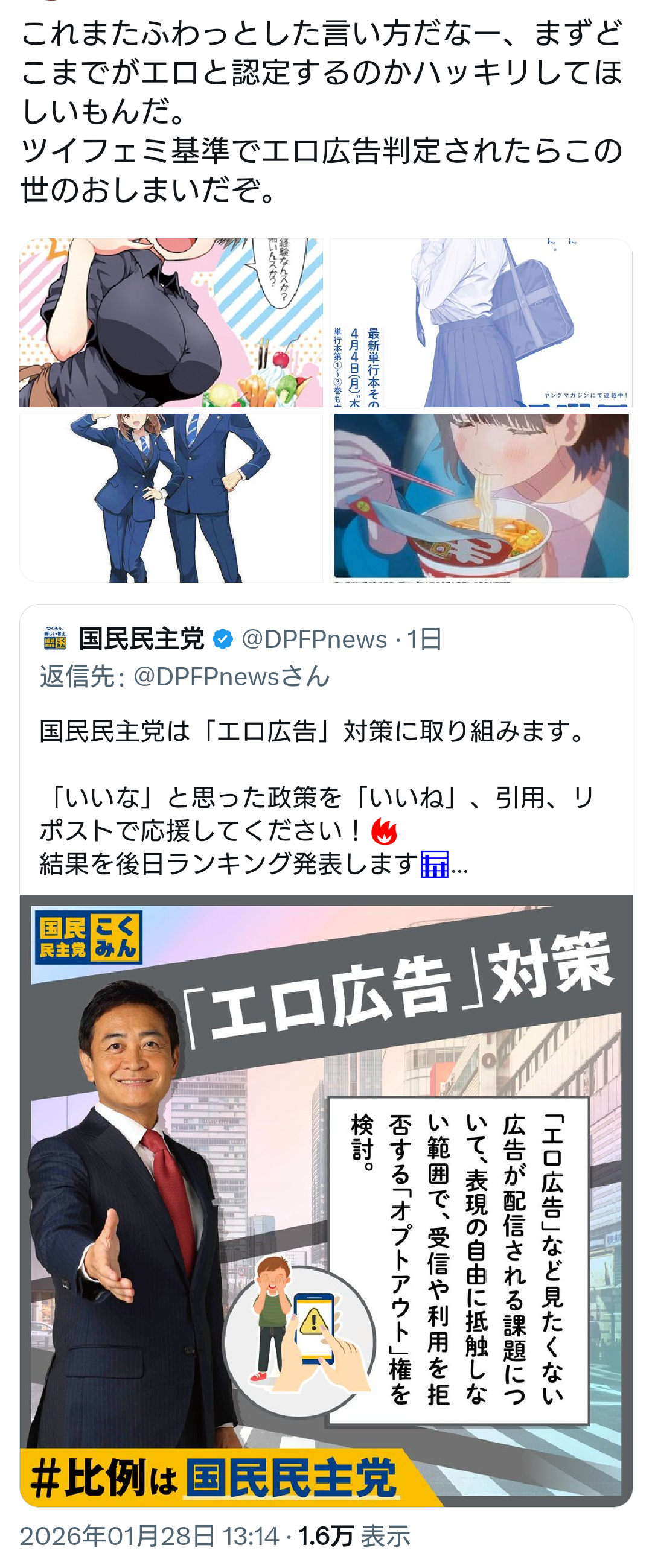 | … | 17🐼Nameとしあき26/01/29(木)23:29:09 IP:219.166.*(ipv4)No.1383597729そうだねx17 1769696949329.png-(1800881 B) なんかな国民民主も変な炎上対策コンサルタントみたいな肩書きの口車に乗ってそうなムーブに見えてきてな |