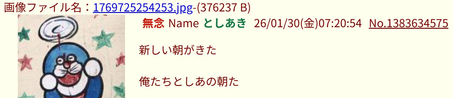 | … | 1無念Nameとしあき26/01/30(金)03:44:00No.1383625991+開示請求殺害予告性犯罪者河村ヤッチャイ |