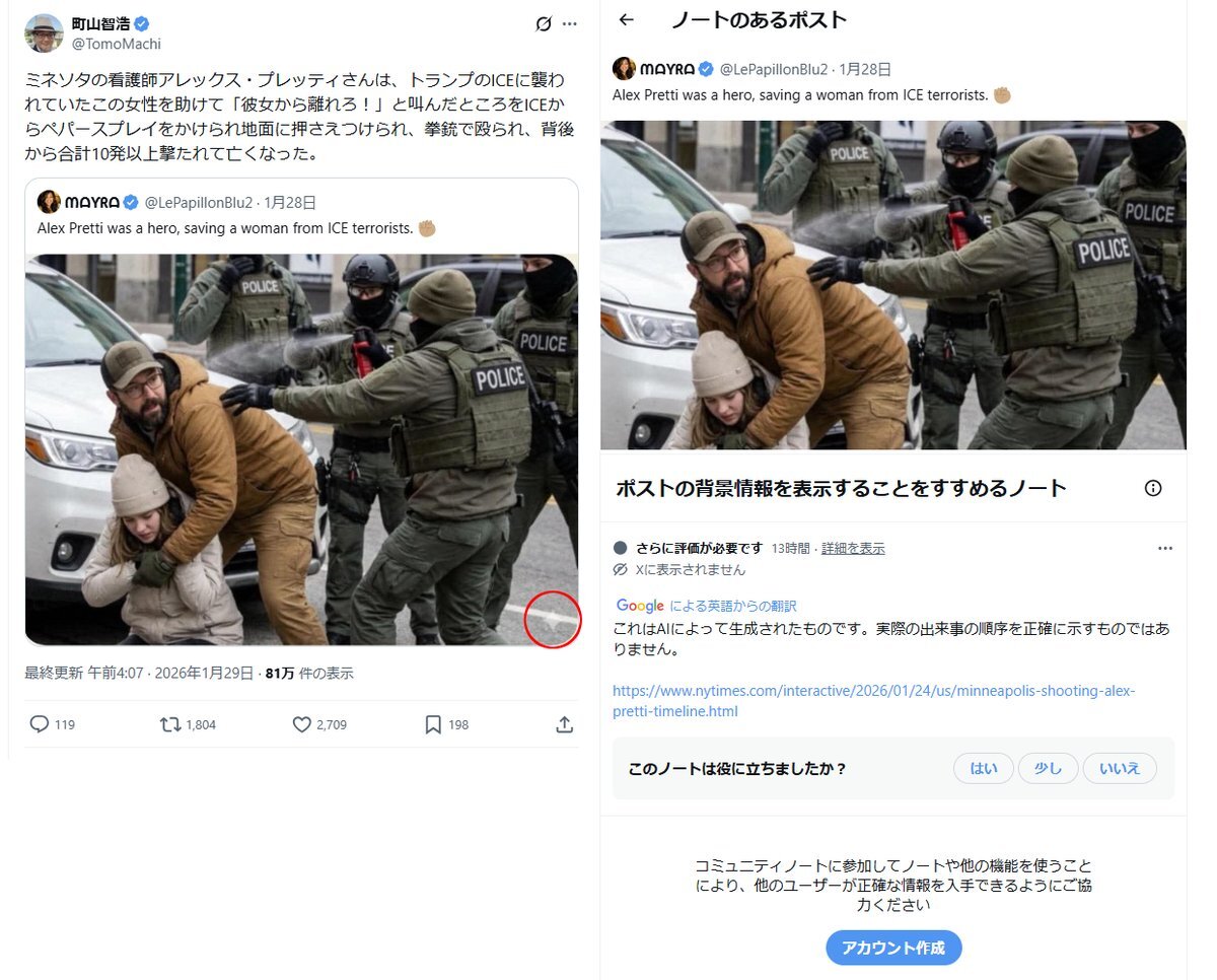 | … | 55無念Nameとしあき26/01/30(金)11:42:16No.1383663090+因みにスレ画のアレックスなんちゃらは普通にICEの車両を襲撃して取り押さえられてる動画が拡散されてる |