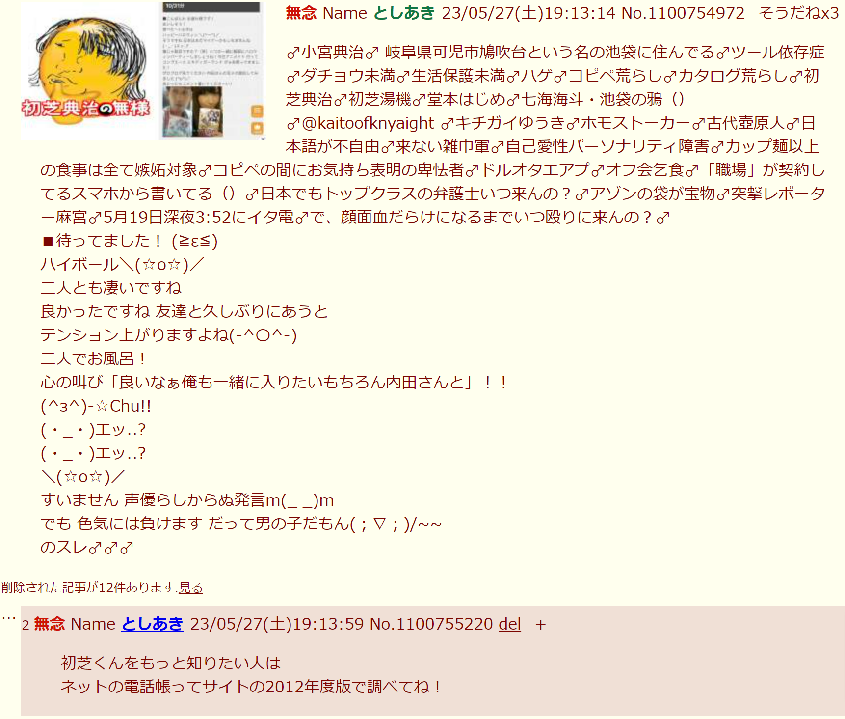 | … | 117無念Nameとしあき26/01/31(土)00:05:34No.1383818384そうだねx2しかし元旦から荒らしを追いかけてお台場まで行ったのに空振りしてるしなあ…ガチホモストーカーのガビは… |