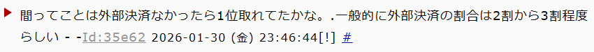 | … | 82無念Nameとしあき26/01/30(金)23:20:52No.1383806609そうだねx1>今年はもう一位は無理かな |