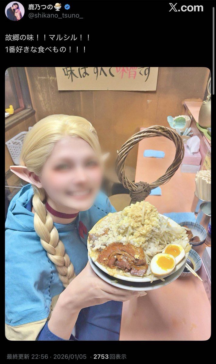 | … | 315無念Nameとしあき26/01/31(土)02:05:46No.1383834820そうだねx1この人はマルシルの才女の再現コスプレがバズったこと以外で何か実績はあるの? |