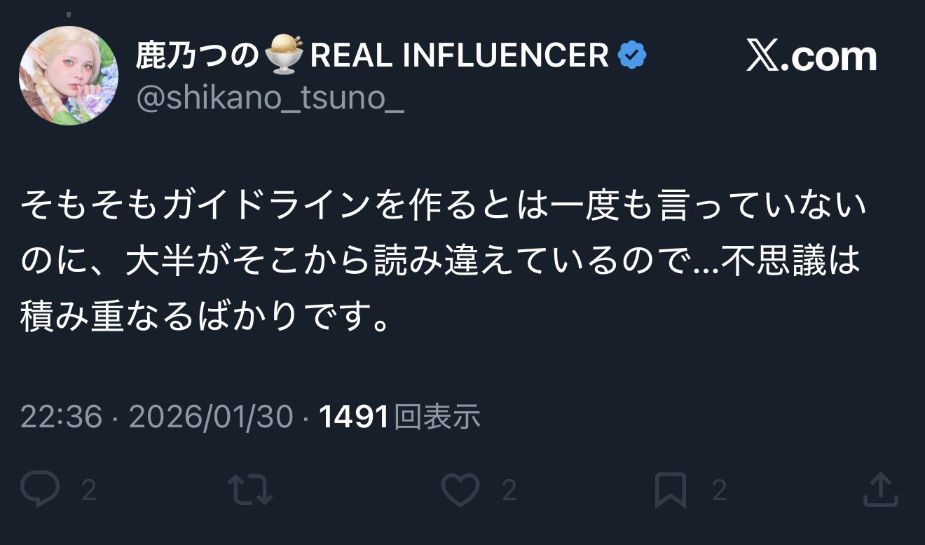 | … | 51無念Nameとしあき26/01/31(土)00:33:12No.1383823689そうだねx2ガイドライン制定するといよいよ全オタから嫌われて憧れのインフルエンサーへの道が完全に閉ざされるんじゃなかろうか… |
