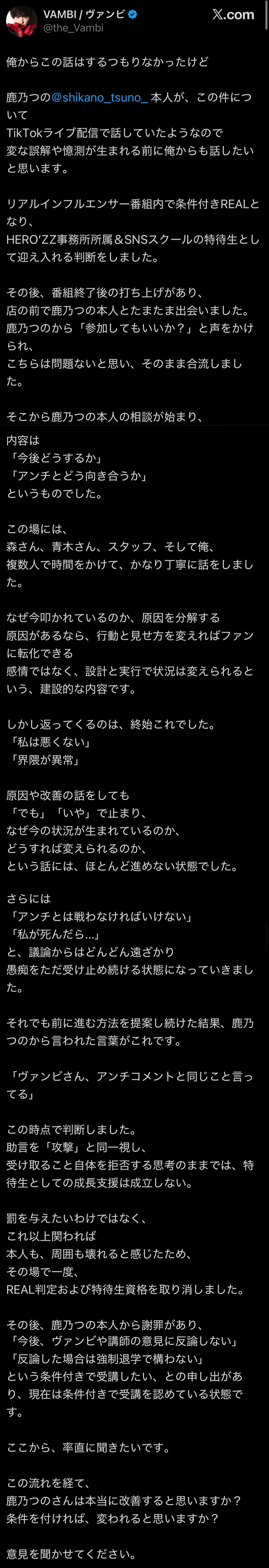 | … | 316無念Nameとしあき26/01/31(土)02:06:01No.1383834839そうだねx2アンチと同じ事言うヴァンビの意見を切られそうになった結果聞く様になったのと自分は聞きたい相手からの意見しか聞かないの組合せでヴァンビは聞くに値しない人間と判断してたのとアンチの意見を聞くハメになってるのがおもしろい |