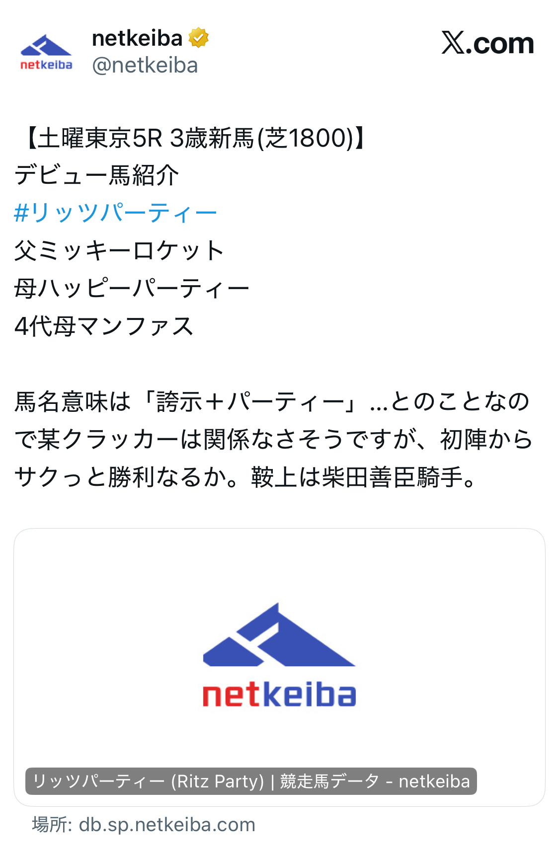 | … | 50無念Nameとしあき26/01/31(土)11:38:22No.1383882245+グラスだけど母母父エルコンドルパサーデース |