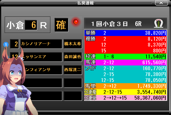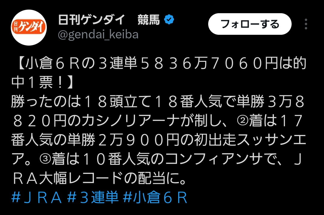| … | 981無念Nameとしあき26/01/31(土)14:20:31No.1383913450+三連単で5000万出たとか聞くと夢見ちゃうよな… |