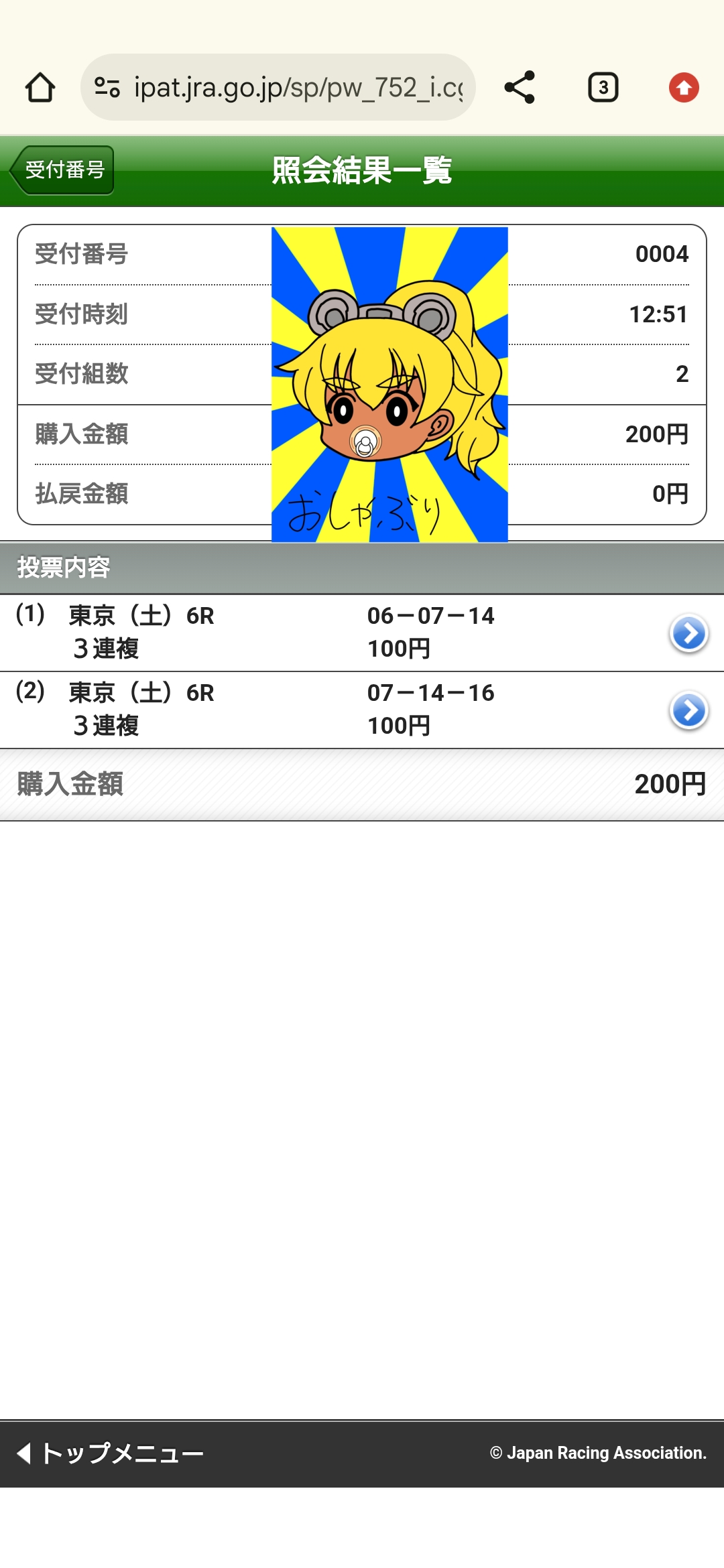 | … | 961無念Nameとしあき26/01/31(土)14:16:57No.1383912774+ 1769836617085.jpg-(1005272 B) >>どうやったら馬券当たりますかね… |