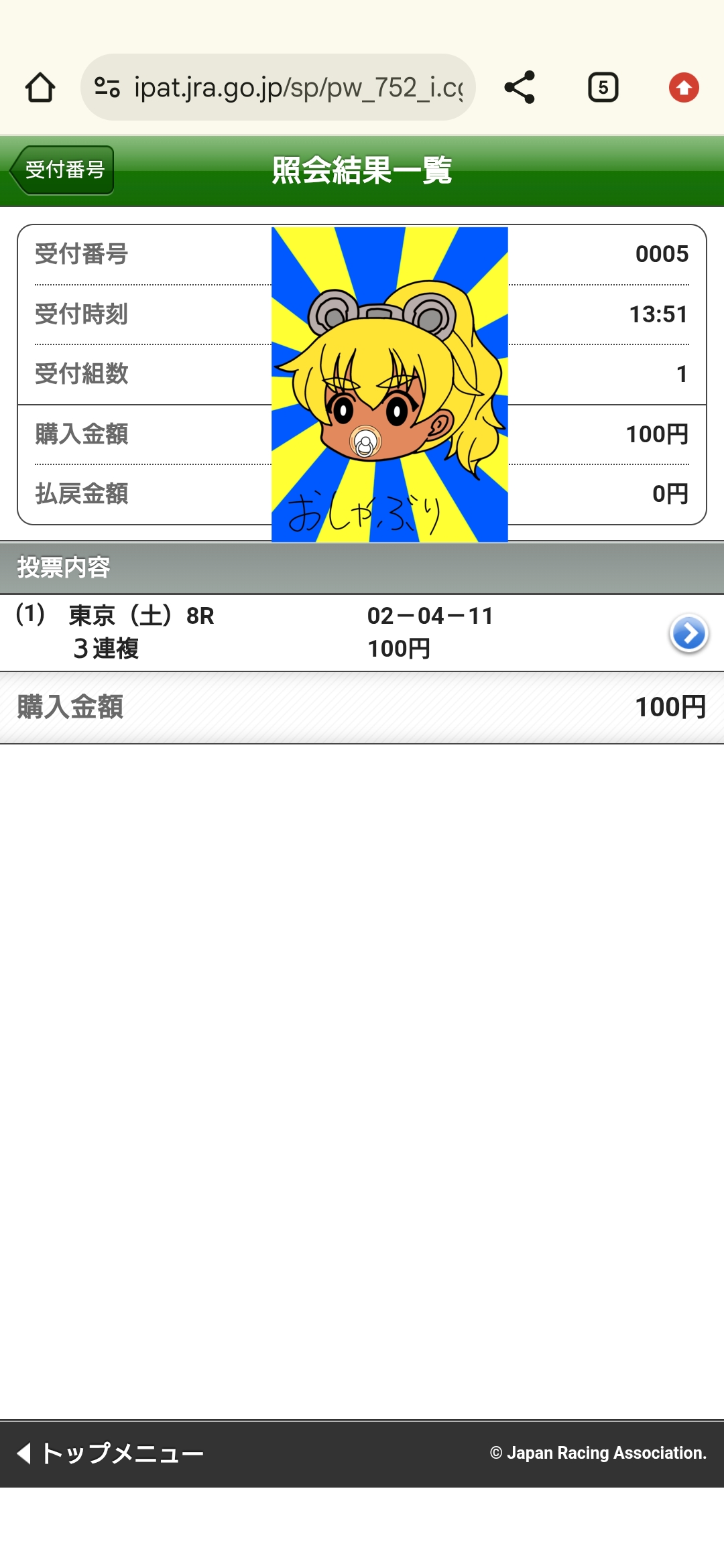 | … | 989無念Nameとしあき26/01/31(土)14:21:48No.1383913679+ 1769836908002.jpg-(505054 B) >三連単で5000万出たとか聞くと夢見ちゃうよな… |