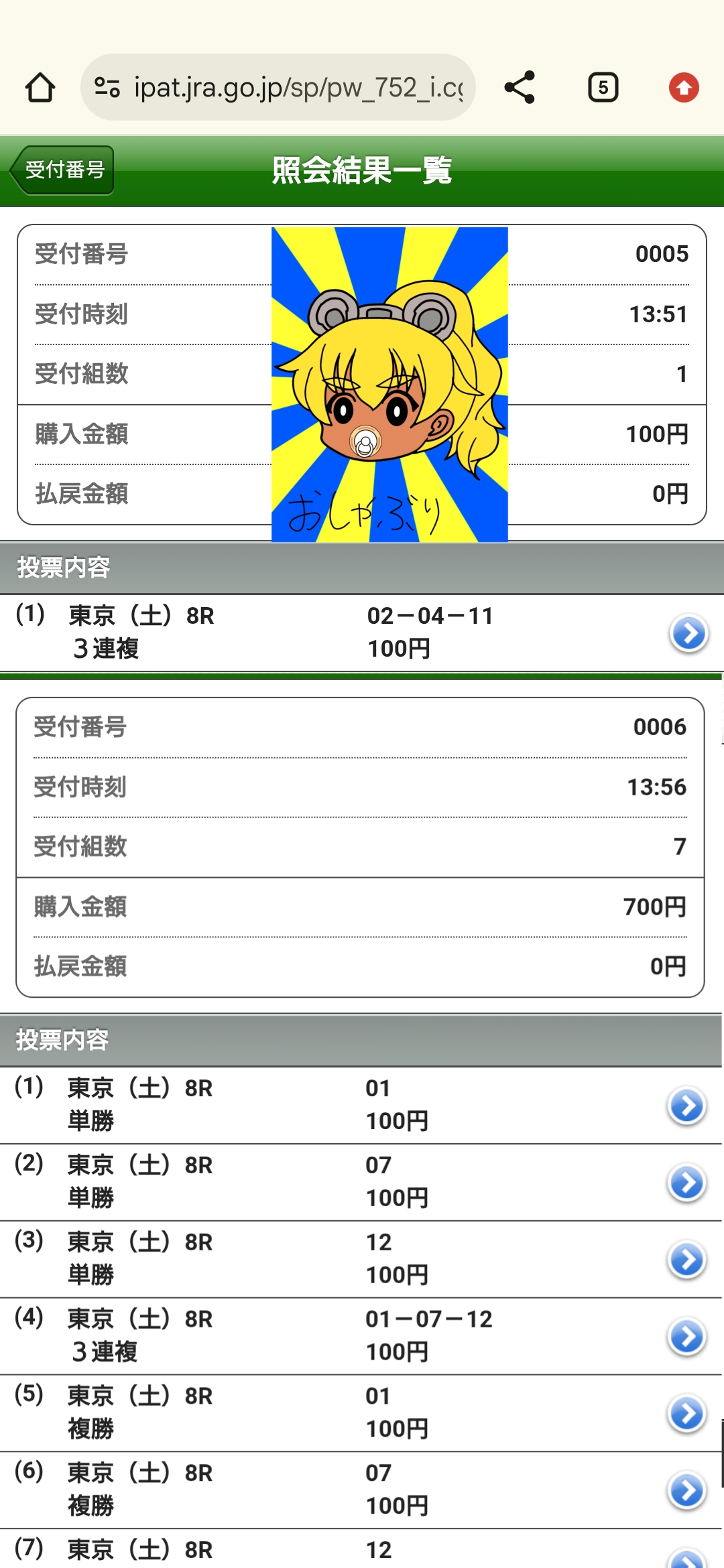 | … | 52無念Nameとしあき26/01/31(土)11:38:47No.1383882327+ 1769827127837.jpg-(514694 B) 東京5レース全頭がけ単勝100円ずつでいきます |