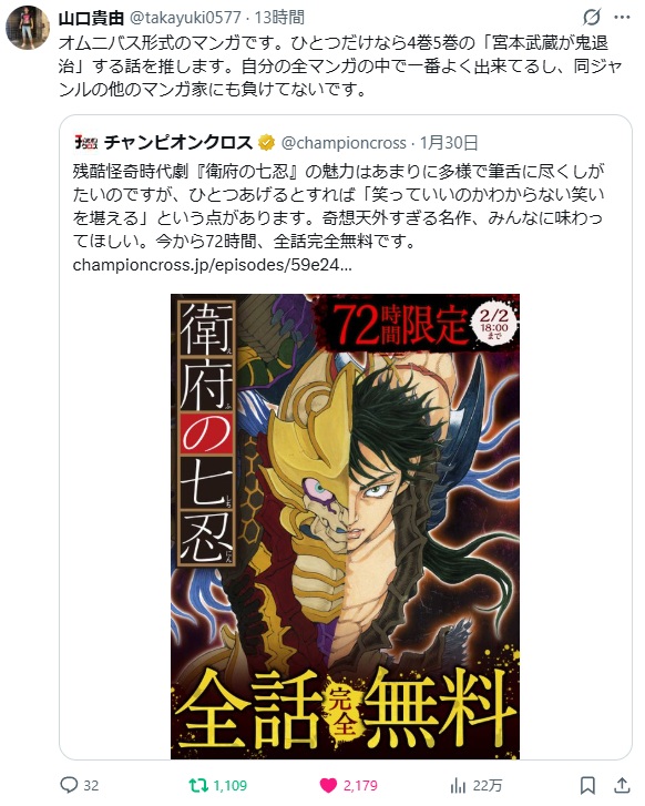 | … | 52無念Nameとしあき26/02/01(日)02:06:39No.1384076182+>山口先生は武蔵編がお気に入り |