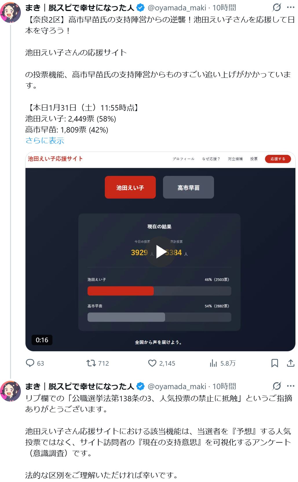 | … | 28無念Nameとしあき26/02/01(日)00:10:52No.1384055726そうだねx3 1769872252012.jpg-(55768 B) >公職選挙法に違反する人気アンケートを取ってるだけではなく |