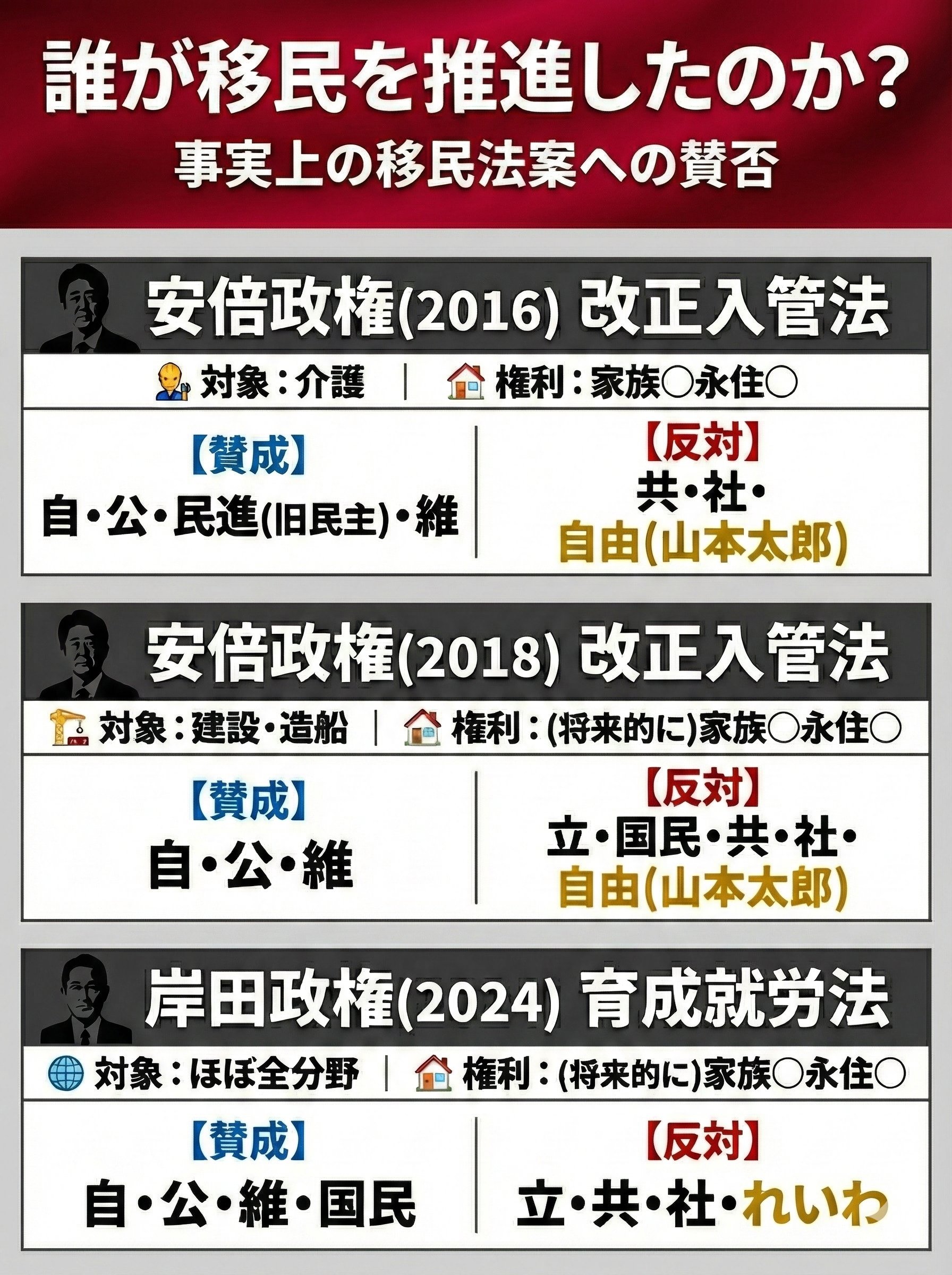 | … | 582無念Nameとしあき26/02/01(日)05:31:18No.1384087110+>そもそも外国人受け入れ緩和したの民主党政権時だったような |