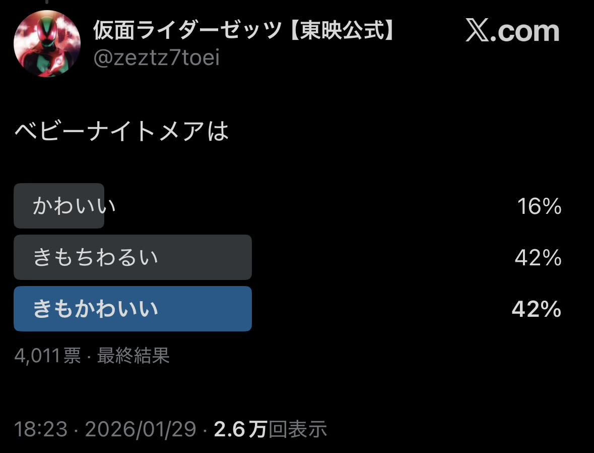 | … | 87無念Nameとしあき26/02/01(日)10:59:59No.1384130646そうだねx7脚本もだけどなんかしら具体的なモチーフライダーのが好きだなって理解できた |