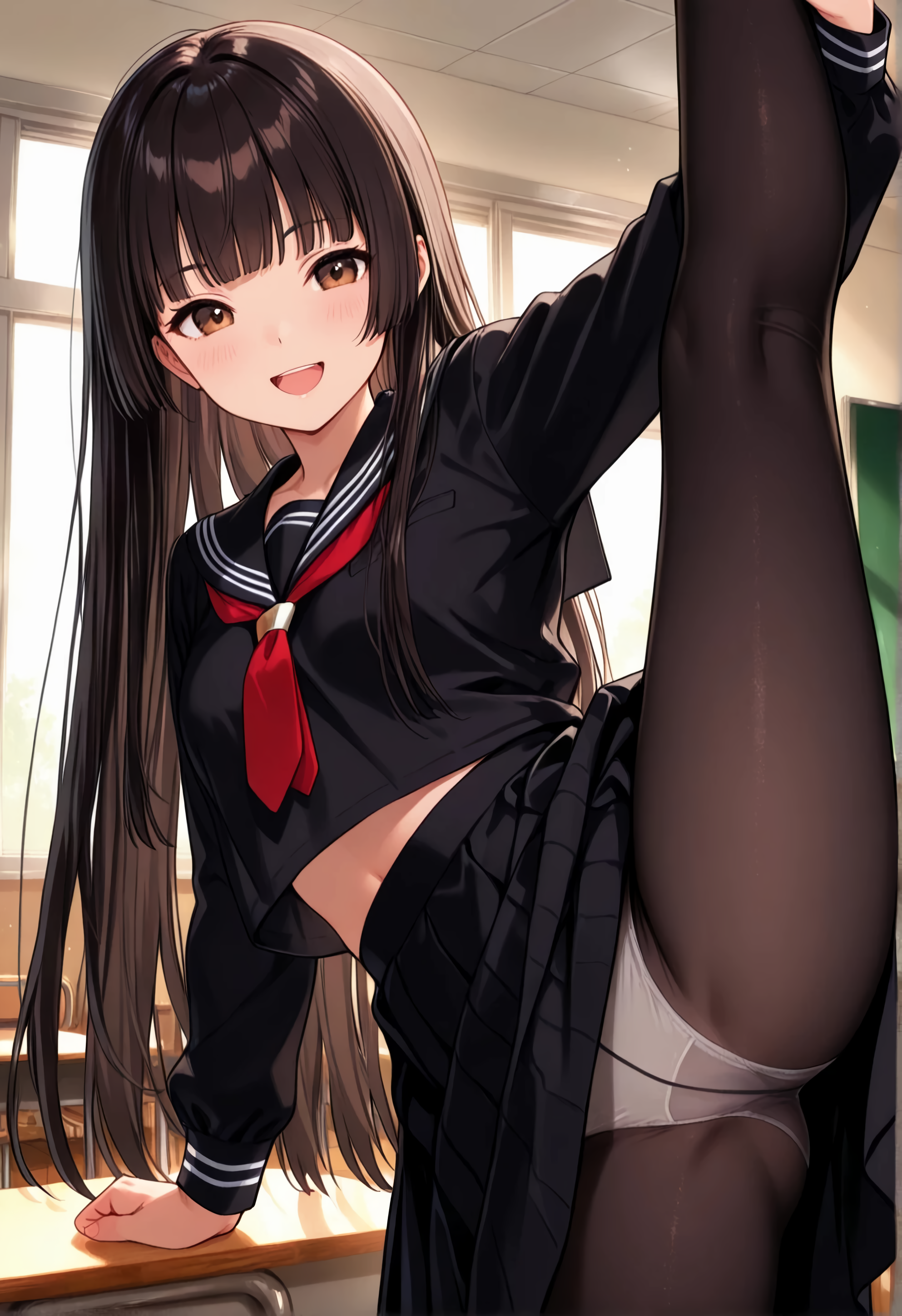 | … | 44無念Nameとしあき26/02/01(日)16:30:55No.1384207491そうだねx2 1769931055379.jpg-(680260 B) 普段は鉄壁スカートで太腿も見せない様な黒セーラーっ子が |