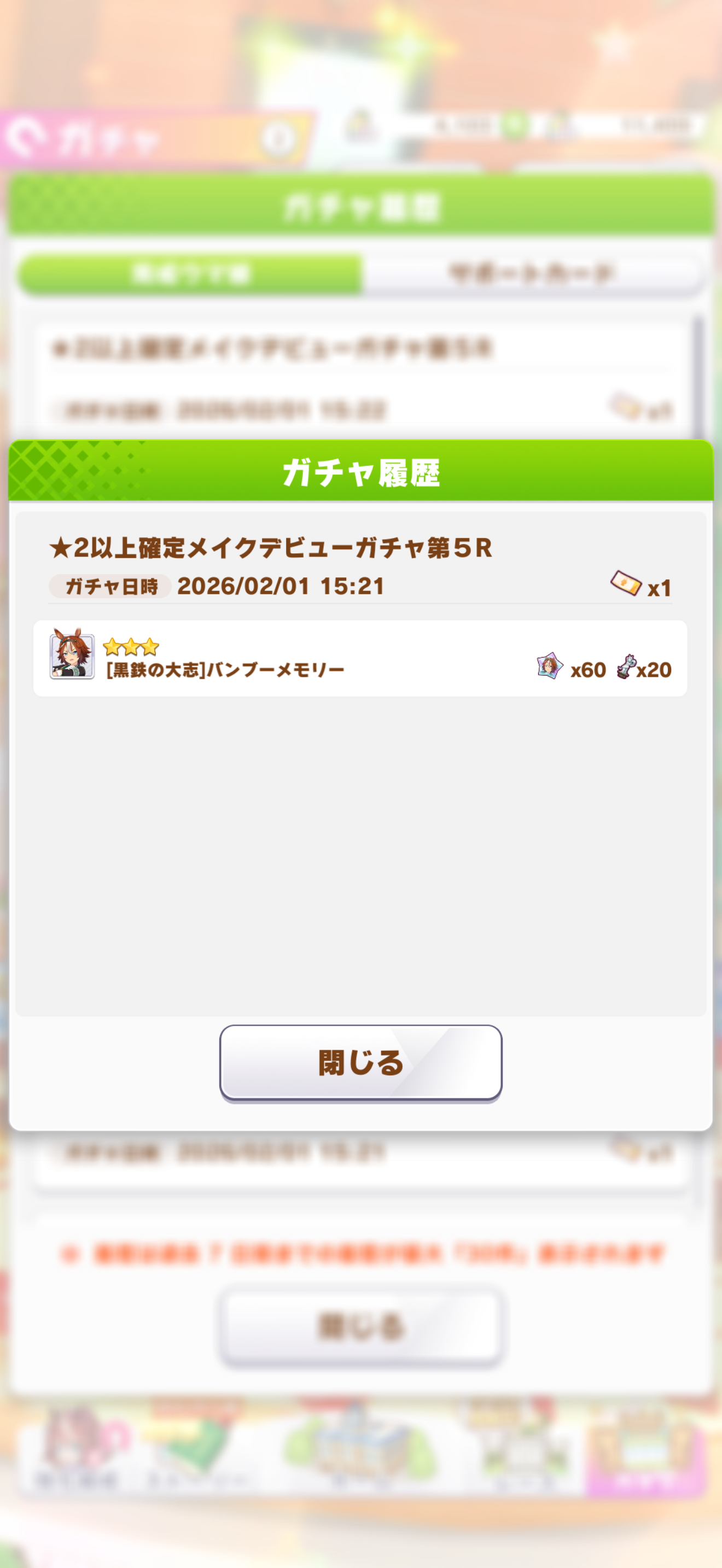 | … | 895無念Nameとしあき26/02/01(日)15:59:12No.1384200153そうだねx2 1769929152917.png-(661589 B) >馬券外したタイミングでチケットガチャ行ってくる! |
