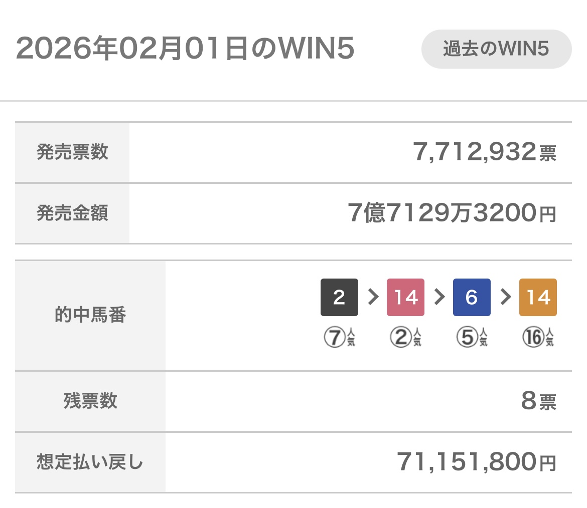 | … | 870無念Nameとしあき26/02/01(日)15:57:25No.1384199723+来週はWIN5買わんと |