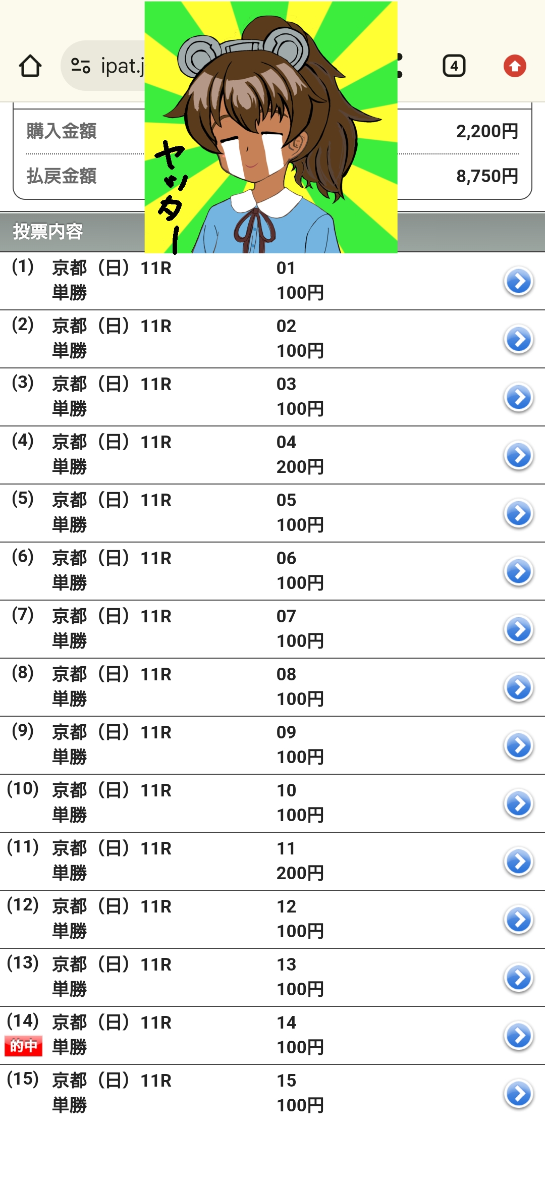 | … | 905無念Nameとしあき26/02/01(日)16:00:31No.1384200471+みんなそんなに馬券買って、アニバは大丈夫なんですか? |