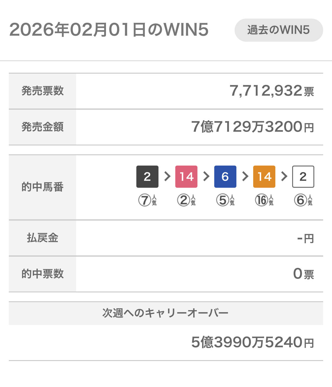 | … | 942無念Nameとしあき26/02/01(日)16:04:49No.1384201511+>6番人気で5億円逃した人たちが心配 |