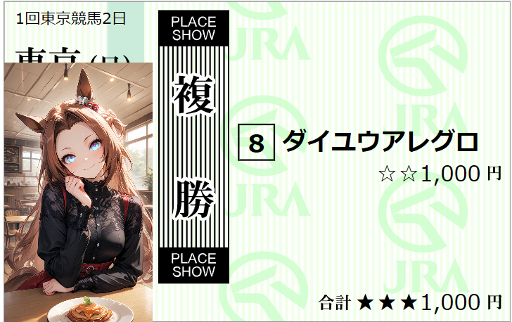 | … | 50無念Nameとしあき26/02/01(日)15:43:27No.1384196357+1234枠の内枠枠連ボックスで運試しですわああああ |
