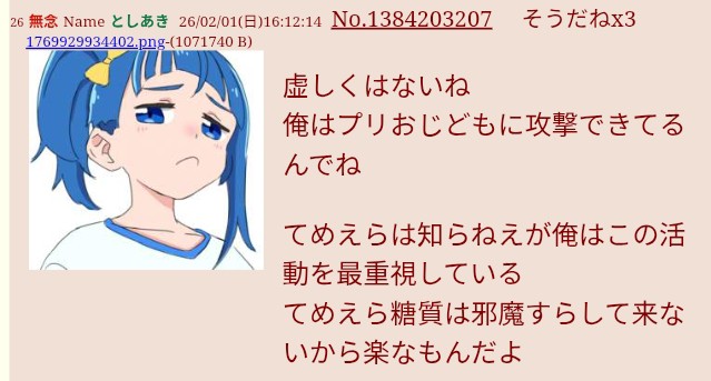 | … | 16無念Nameとしあき26/02/01(日)16:58:33 ID:THlo.vgwNo.1384214030そうだねx6一人相撲もコピペとオウム返ししかできないのかわいそうだな |