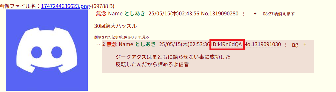 | … | 70無念Nameとしあき26/02/01(日)18:04:13 ID:/jfaMihQNo.1384230067そうだねx3>(こいつもしかしてここがIDスレだということを忘れてる…?) |
