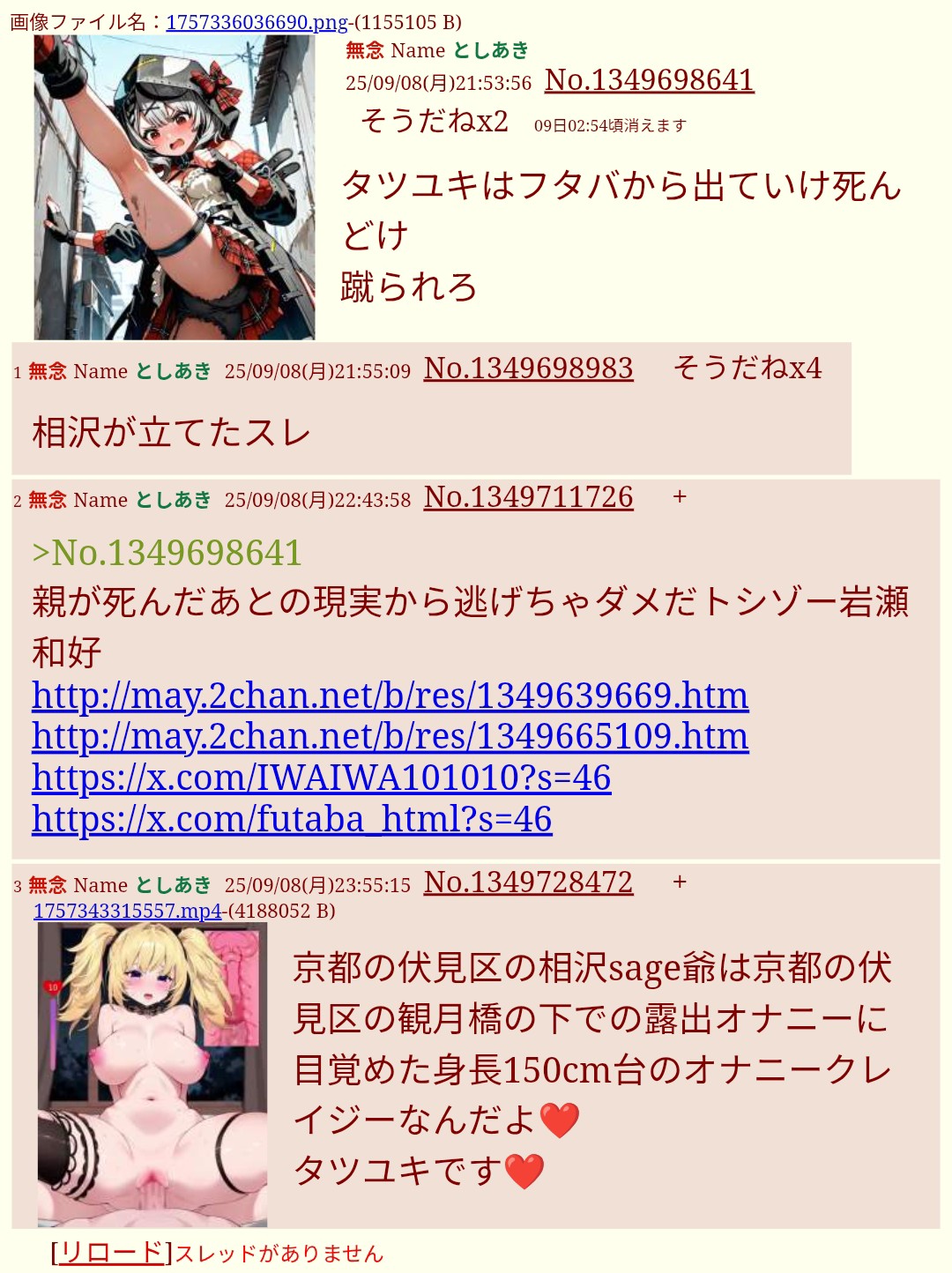 | … | 72無念Nameとしあき26/02/01(日)18:15:01 ID:/jfaMihQNo.1384232410+https://may.2chan.net/b/res/1384200825.htm |