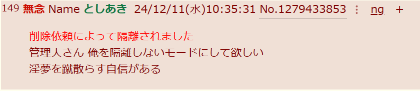 | … | 620無念Nameとしあき26/02/02(月)01:28:03 ID:1f.H.UyoNo.1384351382そうだねx8IDスレでちんぽこさげぢぃされても新事実大発見というかマジに情けないなお前ってなるだけなんだよなぁ |