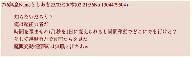 | … | 554無念Nameとしあき26/02/02(月)01:01:23 ID:J.OROUfINo.1384347777そうだねx10>あんなwiki、まともな人間は誰も見ない |