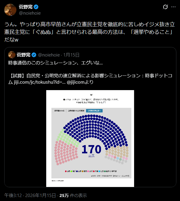 | … | 38無念Nameとしあき26/02/01(日)22:12:36No.1384305918そうだねx1>公明党による立憲つぶしなのか |