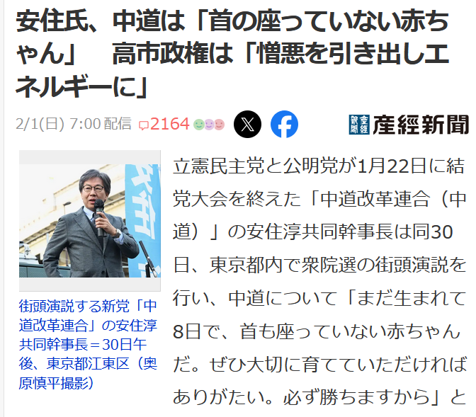 | … | 771無念Nameとしあき26/02/02(月)00:38:34No.1384343950+>中道は実質公明党なのに野田がメインの代表なのあんまり意味が分からない |