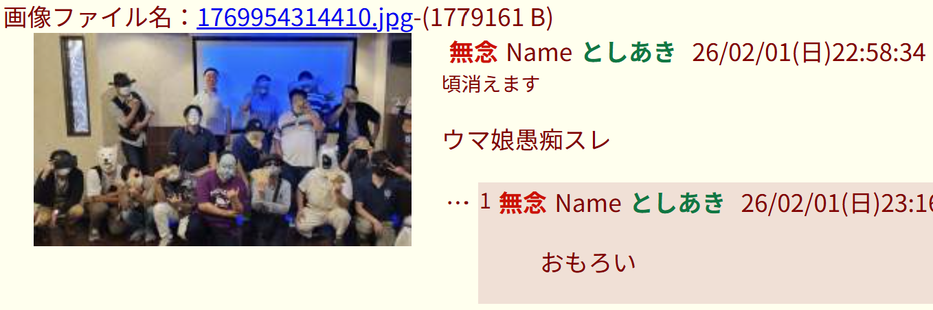 | … | 42無念Nameとしあき26/02/01(日)22:30:48No.1384311490+知恵遅れが立てたスレ |