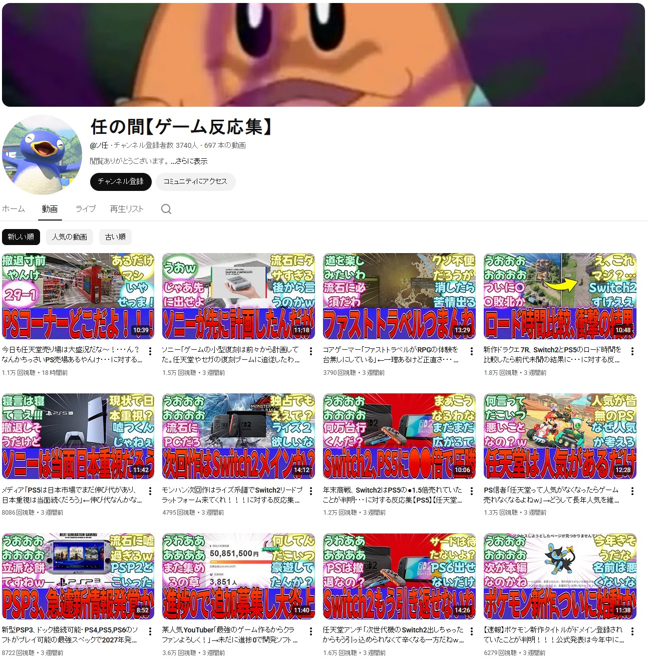 | … | 63無念Nameとしあき26/02/02(月)05:14:54No.1384363061+任天堂系ゲハチャンネルが倒れた |